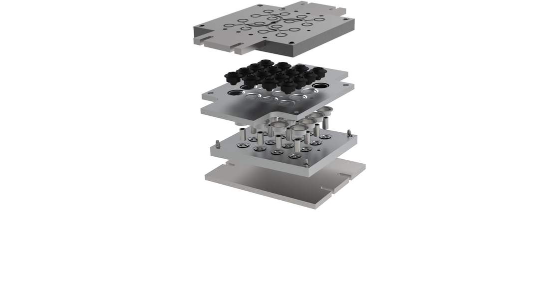This mold includes an additional plate to improve the runner system and enhance part quality.